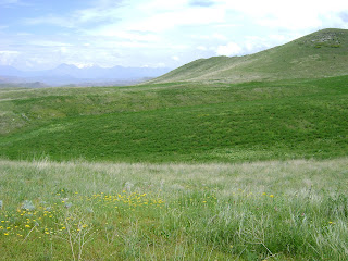 tract of rising land, sloping expanse